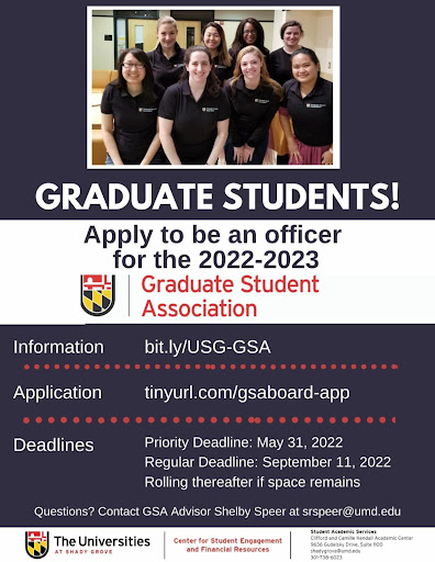 If you’re a graduate student at USG and would like to serve on the GSA board, I would highly recommend applying for the 2022-2023 academic year — the priority deadline is May 31!